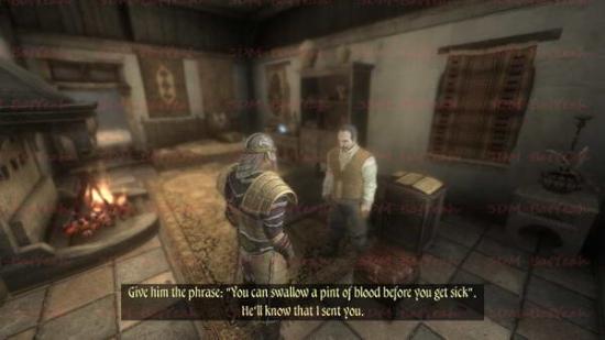 同时他也会为你开启另一个支线任务,BROTHERHOOD,你可以去哪里进行支线任务的挑战。并且告诉你和竞技场下面的人如下图的话“YOU CAN SWALLOW A PINT OF BLOOD BEFORE YOU GET SICK"