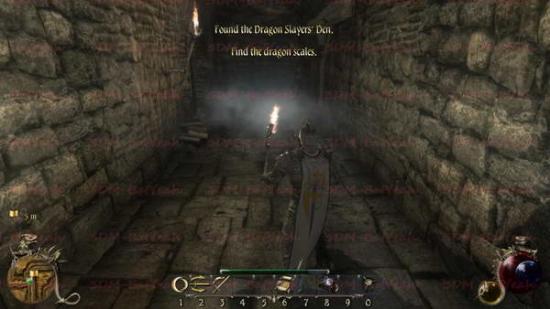 同他对话。首先他希望你去一个洞窟把里面所有的DRAGON SCALES都找出来交给他