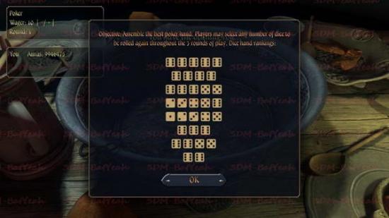 OK。任务系统说完。我们来谈谈本游戏的赌博系统。本游戏的赌博系统非常的简单,就是扔骰子。由于本游戏没有LUCK之类的人物属性,所以这个东西就是完完全全的靠运气