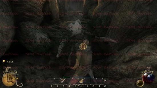 按快捷键F6即可观看本区域的地图。这点很重要,以后很多时候都要用到F6这个快捷键。注意地图上面的表示,看到我们要找的符石即在最深处的地方,一路前进
