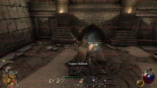 一路继续前进,可以在一个房间中间的平台拿到TRAPPER SKILLBOOK
