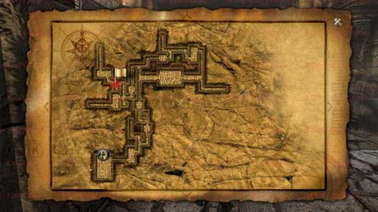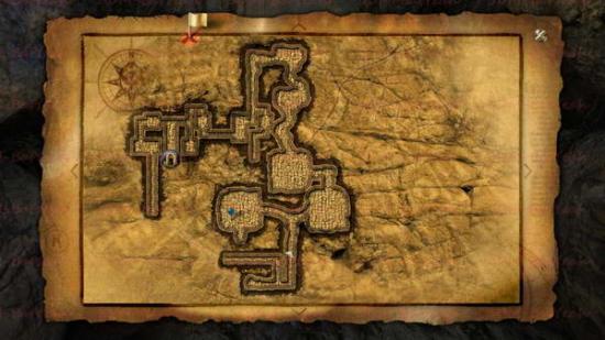 如下图。下面就是古墓的第一层地图。基本上没有什么分支,一条路走到头就可以了。地图上面的岔路口都是一些死路