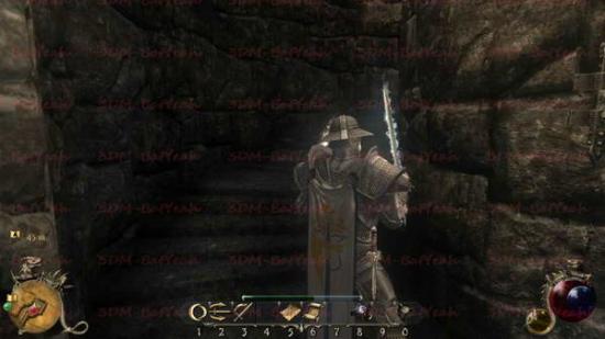 到达目标点之后,发现会有一个向左的水道,沿着水道前进到如下图的楼梯。沿着楼梯到达洞窟的第二层