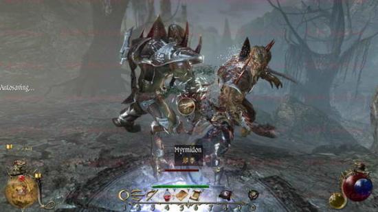 了近战的强击技能)。MYMIDON的近战输出也是相当可怕的,如果你的等级太低的话,可能两下就能把你砍死了。最要命的是,本章很多地形都是比较狭窄的,一旦你被这样的怪物击退到拐角的话,你就等于是