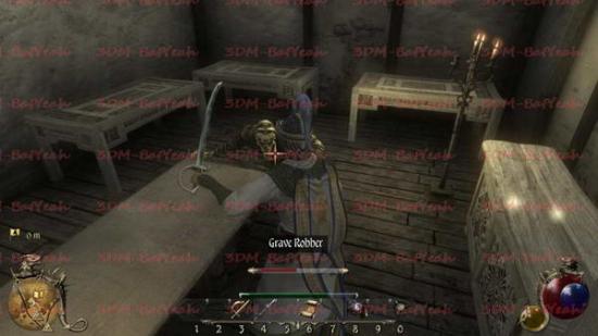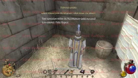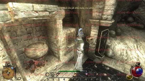 然后来到魔法师学院的二层,来到如下图的提炼房子。将得到的水獭脂肪放到左边的铁炉子,然后拉下开关就能得到BLACK CANDLES