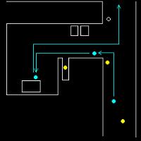 目标会在拐弯处停留很长一段时间,此时应该躲到拐弯处的另一边(见右图)静候,等到听到脚步声响就跟着走过去.目标在走到某处(见右图)就停下,最好躲到一条长廊里,不然会被发现.等目标经过长廊后就迅速离开跟上.