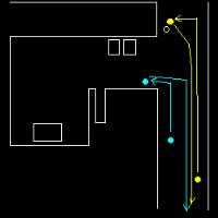 目标十分狡猾,她会在拐弯处停下,最好按照右图的路线趁机跑到电灯柱后(见右图的圆圈),等她离开后才追上.