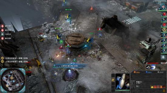 占领最后一个电力站,会自动进行最后的战斗。你要面对的是非常强大的兽人战斗要塞。这个家伙非常的难对付。除了反载具武器,任何的远程攻击和近战攻击对于他效果都不是很好。建议将你的部队布置为一个环形进攻圈来攻击他