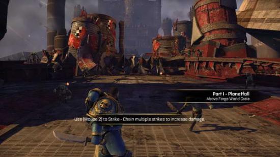 游戏的操作是WSAD Ctrl是放大 空格是翻滚 鼠标左键是开枪 鼠标右键是用刀....本人不懂40k历史...都把敌人叫怪物..大家将就看...