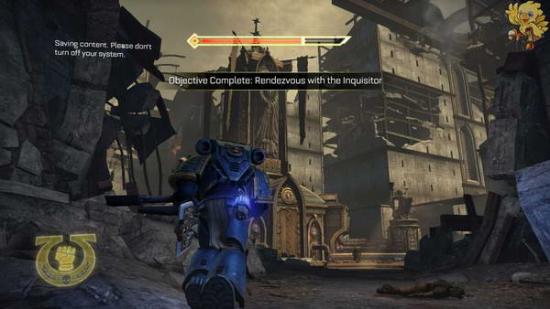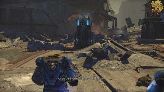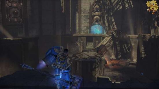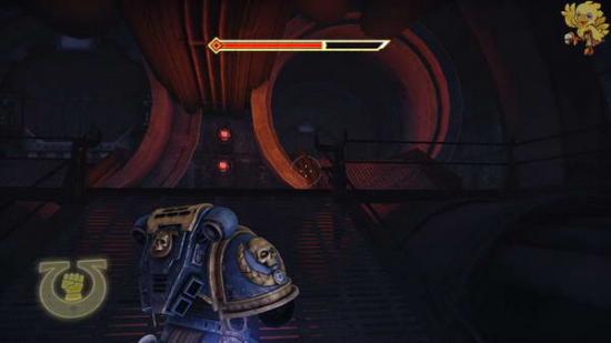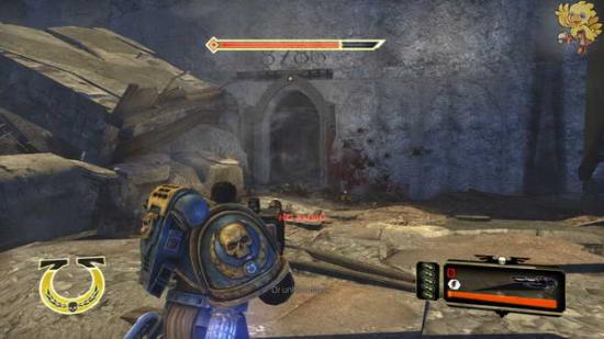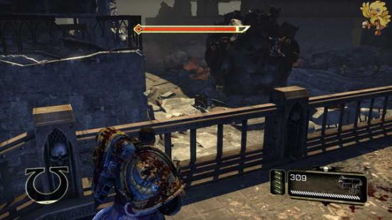 然后一直前进会看到左边有个岔路,从那里进入,前面还会有蓝色的拳头指示你,注意路上的重火力炮兵,用锤子攻击他们,清理掉之后一直前进,到达一个废墟的中间点后清理完