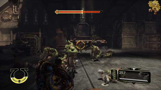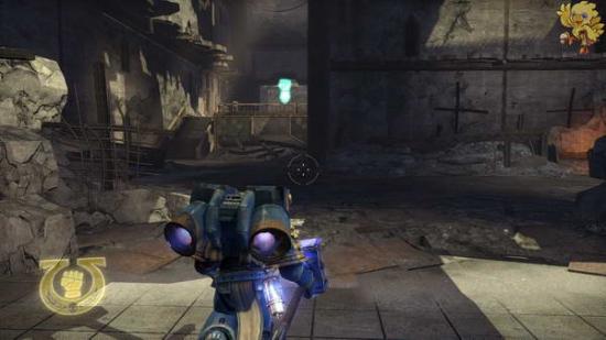 拿到之后我们又从梯子上去,走到对面去,到路中间会看见一个巫师一样的兽人他会召唤拿盾牌的兵,清理掉,用刚才的激光手枪,蓄力攻击.