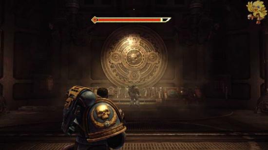 然后出去看到对面的一道门有保护层保护着,这时候就准备和刚才的巫师兽人战斗吧,先清理小旁边的机枪兵,然后看见巫师兽人,飞砸过去攻击他,他会瞬移躲避1-2次,然后