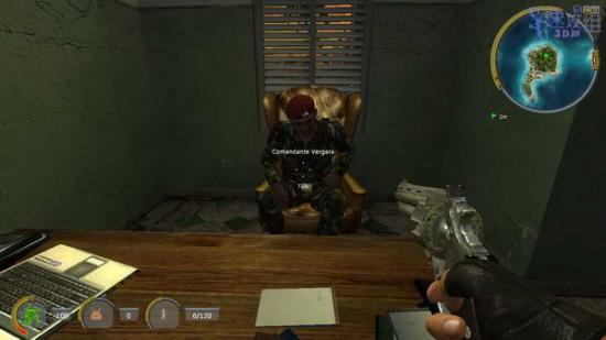 第五个任务,去目标小岛上抢不明组织的雕像,一路杀进去就是了。最里边这个敌人穿着超厚的防弹衣, 干掉之后搜身得到雕像。