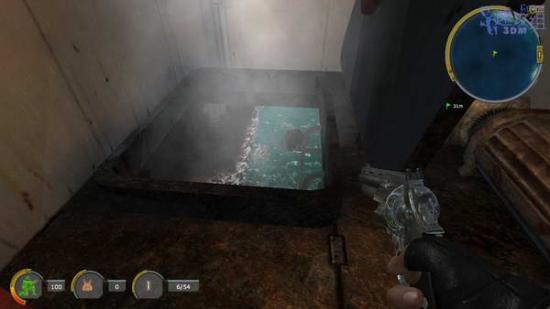 船的内部只有一扇门是打不开的,在那扇门附近找图中这种有舱盖的地方,打开舱盖后下边是水。