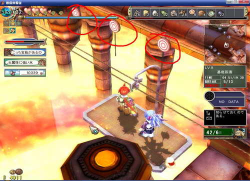 注意旁边红圈里的靶子,要用魔法全部命中,前面的2个门才会开启,当时我在这里很卡了一会。2边都有,共12个靶子。