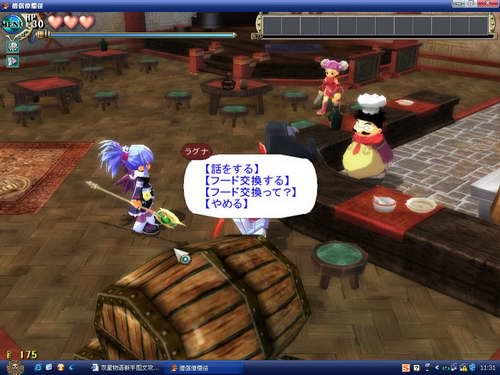 酒店里可以找大厨换食物,10个低级食物换一个高级食物,虽然10个低级食物的血比一个高级食物的多,但是经验值是比不上的,由于游戏升级是靠吃食物的,所以以后这里肯定是常来之处。不过不要全换完了,不然你打迷宫就没得吃了。