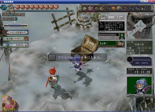 第三层:2个罐子,1个宝箱,1个食品箱。小BOSS后面的宝箱里是箱中箱通过后来到吹雪原·终点,E齿轮到手,男主角的第四把武器。按住攻击键不松即可进入飞行状态(我终于有千G鸟了。。)