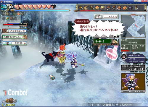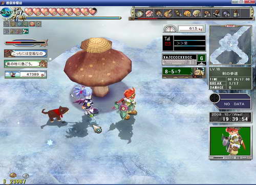 把最右下角的怪杀死后,掉下的蓝色帽子给刚才的蘑菇戴上。