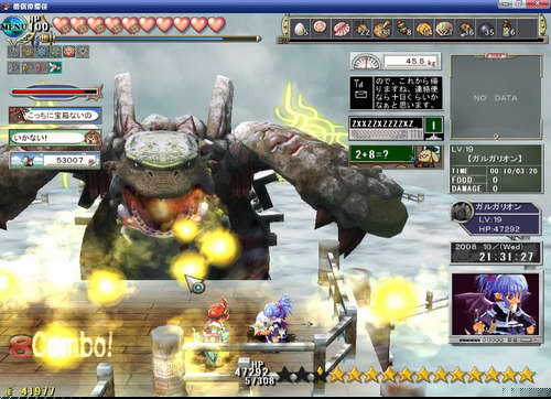 技能1:BOSS双手一拍(你以为你是钢炼啊。。。),主角站立的地方不断出现光柱,要不断跑动。