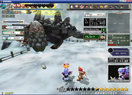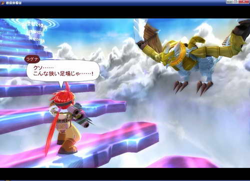 打法:在BOSS头下方扔炸弹,炸弹爆炸以后,BOSS会倒下,此时跳到BOSS脖子上,攻击BOSS背部的绿色小洞。BOSS要起身的时候,马上在补一个炸弹,可以让BOSS没有机会用技能。最好多准备点炸弹。