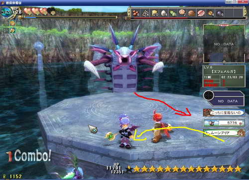 新增招式:太极泡泡,就是钻进水里围着你绕圈,然后不停得用泡泡攻击你。躲避的时候注意别掉水里,因为BOSS把地面弄的很滑,很容易失足。躲的时候尽量在中间绕圈。