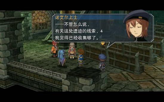 开着装甲车嘟嘟嘟,来到遗迹,刚进遗迹就被幽灵袭击,干掉自爆怪后探索遗迹,打开两个机关进入上层却被钟声引出了一只大恶魔,多用上级属性魔法,干掉恶魔后来到塔顶。原来大钟的共鸣扭曲了这里(这钟是ED5共鸣石做的吧),众人停止大钟的共鸣后离开遗迹,完成任务。诺艾尔上士说话开始大舌头了(喂!其实是星无火那个人品急需鉴定的魂淡的翻译失误吧!):