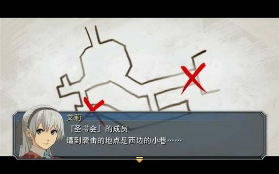来到蛇剑帮,看门小鬼十分难缠,于是改道前往圣书会,来到圣书会,罗伊德给首领瓦吉分析利弊后还不失时机的讲了一个笑话,逗得瓦吉龙颜大悦,于是将二派争斗的原因告诉众人:五天前,圣书会的一名成员在旧城区被打了闷棍,至今还在医院与护士姐姐谈心,虽然没有目击者,但依据伤口和袭击手法来看,必定是蛇剑帮的人干的。瓦吉的推理天衣无缝,好聪明啊。