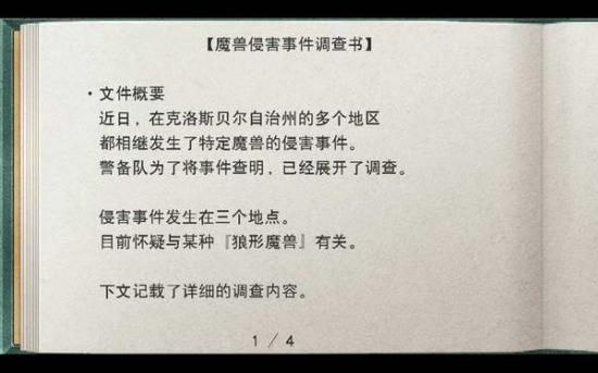 回到办公室,翻看魔兽侵袭的调查报告,分别在阿尔摩利卡村、圣乌尔斯拉和矿山镇玛因兹三处发生,共同点都是留有狼型生物的痕迹,同时皆发生在夜里。四人决定去实地搜集信息。来到门口,导力车还有俩小时才来,四人决定徒步前往,半路上四人吹着微风喝着饮料在桌边休息,闲谈聊起了古战场。