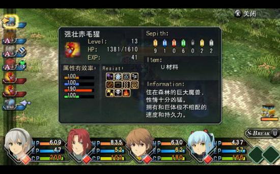 时间到了可导力车却没有来,路管出现告知众人一两道理车失去联络,四人顿感不妙立刻寻找,在半路发现被魔兽围攻的导力大巴,四人立即迎战。此战注意多多利用魔法以逐个击破来战,同时适当的使用一些增益,看好血,敌人防高,打的是持久战。