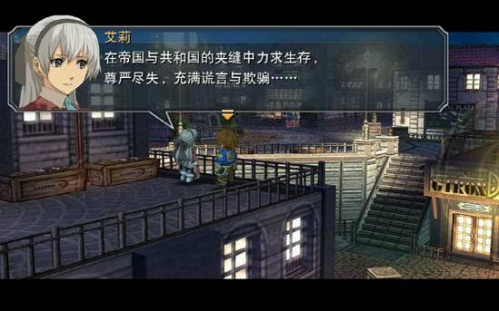 夜晚罗伊德兽性大发:“让我抓住刷好感度的机会了。”来到楼上给艾莉做心理咨询,艾莉也敞开心扉,因为政治体制所以做出改变很难,为了改变政治状况艾莉决定加入警察从基层做起,看能否从别处着手。同时艾莉自爆穷小子父亲入赘攀附权贵娶了母亲,而后借助艾莉的外公从政,却发现黑暗无比,于是决心改革可惜失败告终,一气之下出家当了和尚,哦不,是归隐了,丢下了母女二人,母亲因此感情受挫疯掉了,哦不,是移民外国(这什么扭曲的狗血剧情啊!)。而艾莉就在那时继承了父亲的意志,决心参政。在外公帮助下学习进修后回到克洛斯贝尔。