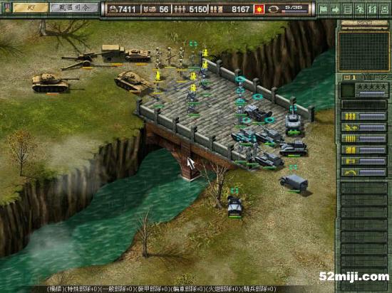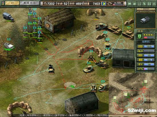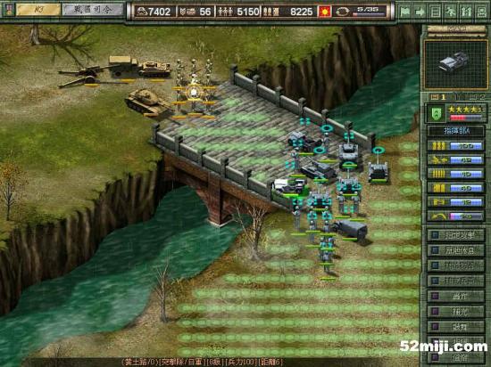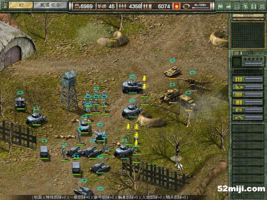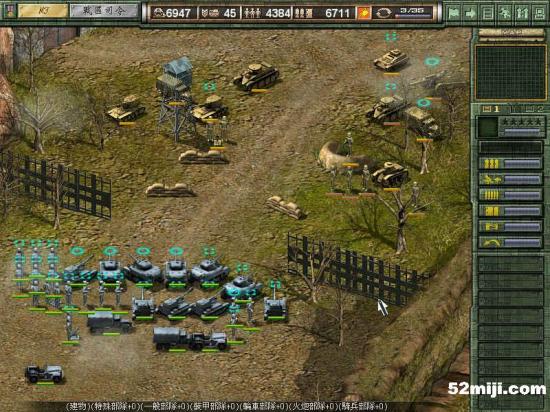 本关不难,但很经典,因为敌人除了步炮固守阵地外,战车会根据军情调动。采用斩头、截尾、中间开花的方法,全线歼灭敌军。(这几天《八路军》看多了)。兵分三路:两路各带一半战车和突击队(主要是扫雷),分别从上方和左下正面进攻;步兵冲破铁丝网,攻敌侧翼。铁丝网可以用指挥车加助攻解决,空袭一次3格就开了。由于我限制军队数目和种类,只有2辆运输车,步兵要提前加助攻,运输车给迫炮补给后再向下赶上战车。
