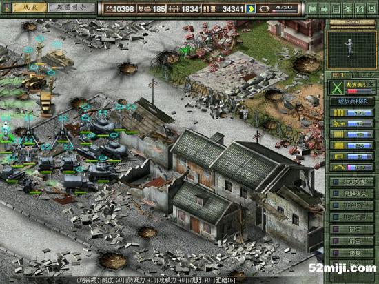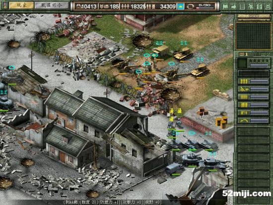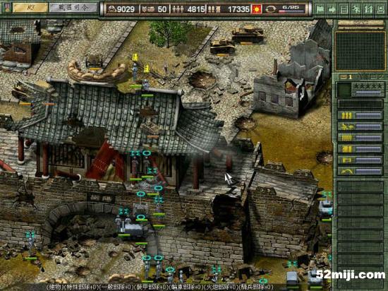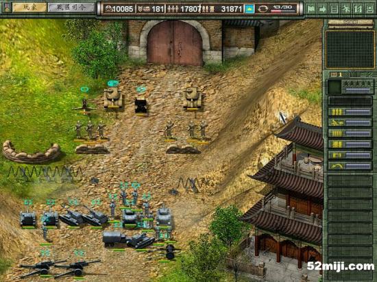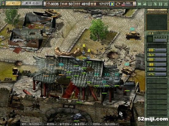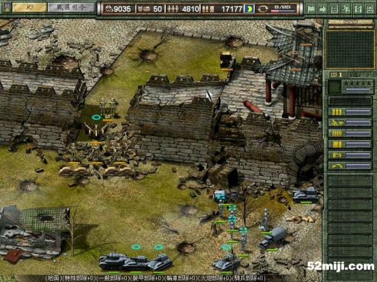 突破中门后,上面的敌军会主动进攻。原中路军主力就地防守(但要派步兵摸过去干掉火炮),半数自走炮和重步兵向左移动;原右路军半数战车和步兵进城向中部进攻,自走炮和重步兵向左门移动。