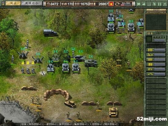右路重步兵向敌战车推进;左路留半数战车就地防守,半数战车增援右路(途中顺手灭掉中上的敌重步兵);轻步兵系摸下去对付火炮。