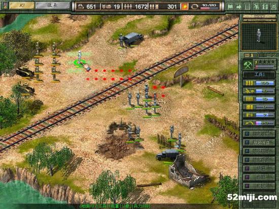 敌人从上面和右面两路齐攻。部署时工兵排在前面,到上面路口埋2组雷,敌人触雷后会停滞很长时间。再向左移动,在敌援军必经之路布雷,然后从上面撤回。参考附图,由于开始介绍敌人援军位置有误,大约在图中“工兵1”的位置,因此其实雷可以埋得更靠前些。注意那个工兵是为了让大家看到敌军位置才走到那儿的,实战中可别这样。