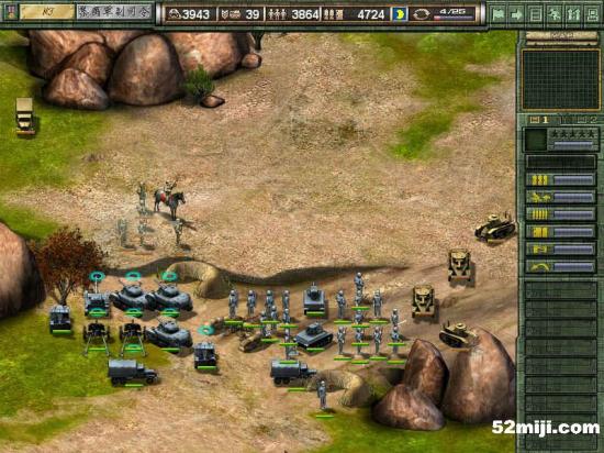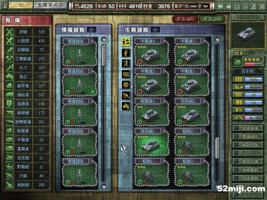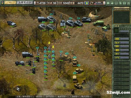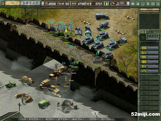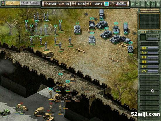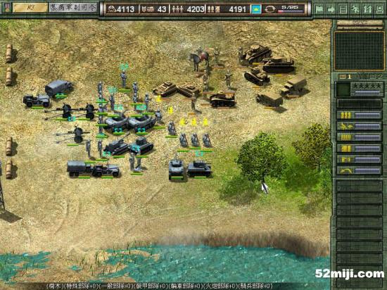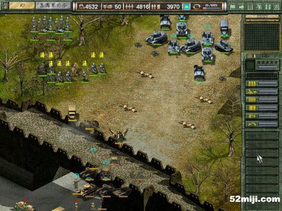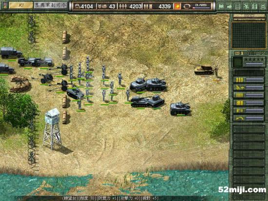 和上一关相似,战车先行,在三叉路口布阵,敌军基本上是沿着路的左边走,因此炮兵在右边构成犄角,迫击炮辅助。轻重步兵完全没用,老练扫雷也没意思了。