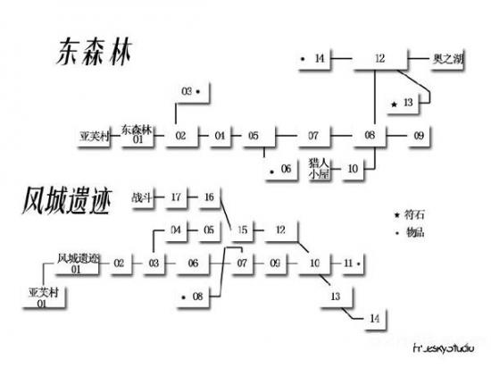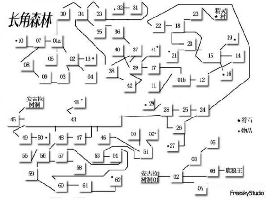 4.长角森林是一个比拉飞多司还大的迷宫.还好战斗不多.散落在地图各处的都是些不错的东西,不妨收集一下.注意,打死鹿狼王后自动回村庄发展剧情,要捡东西及的之前捡.