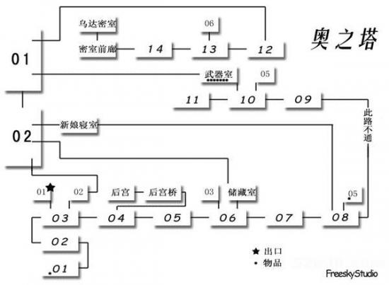 1.在奥之塔从房间01(Alt+D打开地图编号)逃走之前不妨先去回廊01拣东西,很近的.而且进了房间01就不能出来了.武器室里有几个罐子在石头后面别忘了搜.