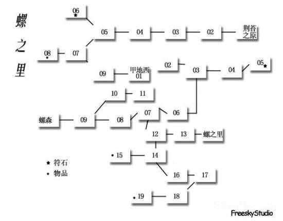 2.螺森里面有两条路会消耗引路蟹,千万不要在那里无聊来回走,否则引路蟹用完了必须回螺之里重拿.还好这两条路是单向收费.被迷阵挡住后,要找三长老不用回螺之里,反正他们也不在螺之里,可以照着地图直奔他们在螺森的别墅.