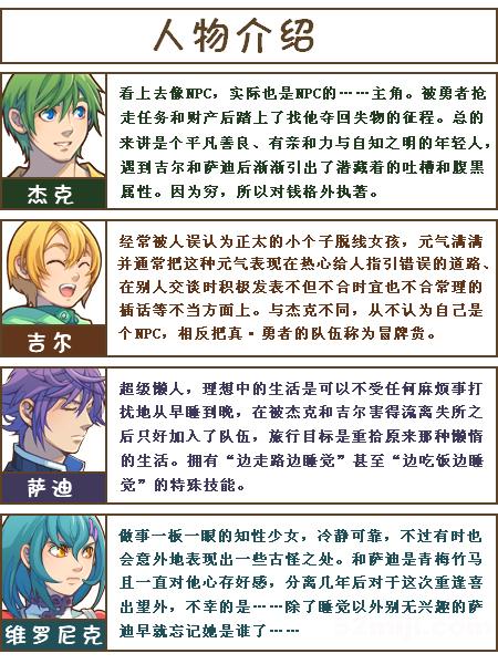 这个游戏试图让玩家换一个角度以NPC的身份体验一下熟悉的RPG流程,也算是为我们惯常所忽视的NPC们报一次仇吧……另一方面,其实不管是怎样的小NPC,一旦把目光移到他身上以他的视点展开故事,他也就不再是NPC而是主角了,所以这游戏也同样可以视作一个完整的RPG来玩。
