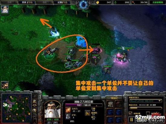 c.ORC攻击步兵或者剩HP不多的水元素,被攻击的步兵立刻后撤,防止被ORC连续集中火力攻击一个单位,其余的所有部队全部集中攻击先知召唤的狼,(狼可是廉价的经验啊~不能放过~嘎嘎)攻击空血的水元素的时候要注意,首先水稍微后撤,不要让它在最前面,当水的HP降到70~80左右的时候看先知刚打到水素攻击硬直的一瞬间所有部队一起A水不要让ORC把经验抢掉。