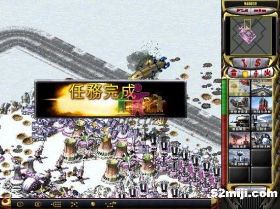 不惜一切代价防守(失败条件:两个矿厂同时被毁)这关任务就是个守,长达一个小时之久,以下为各要塞防守要点(按东西南北方位,从难到易):1、最难守的要算基地西北方,每次来五架基洛夫,这个位置多造防空,另安置十来辆防空车加以防守,建议卖掉一个电站,给防空车留位置;