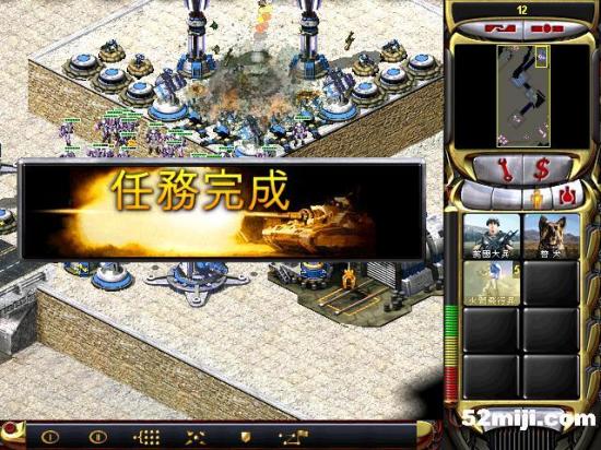 第二关:间谍与苏联基地联系,出五辆v3,摧毁路口敌建筑(1-2)