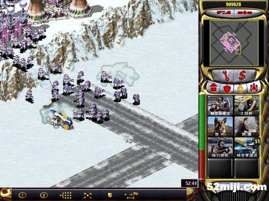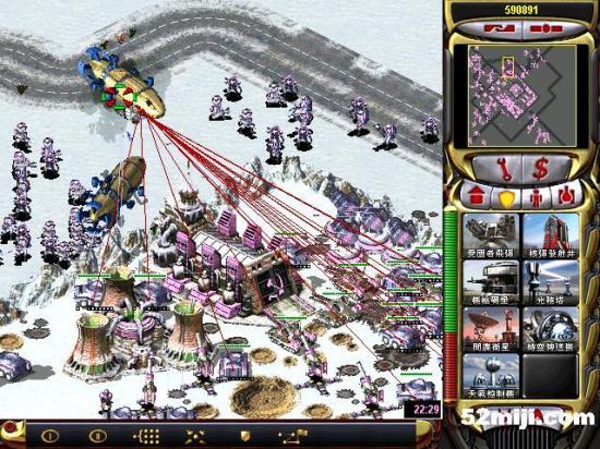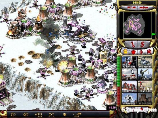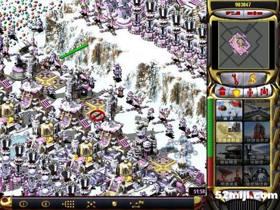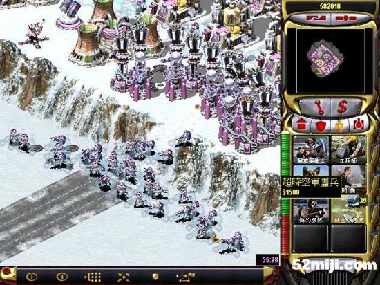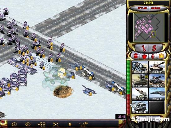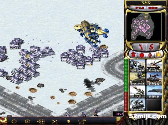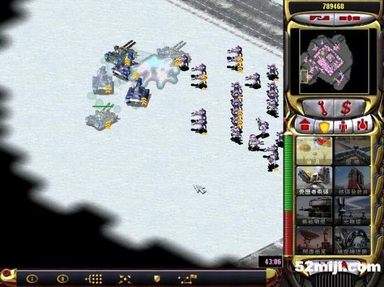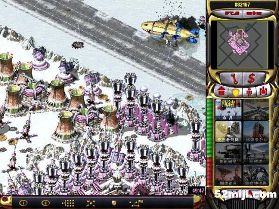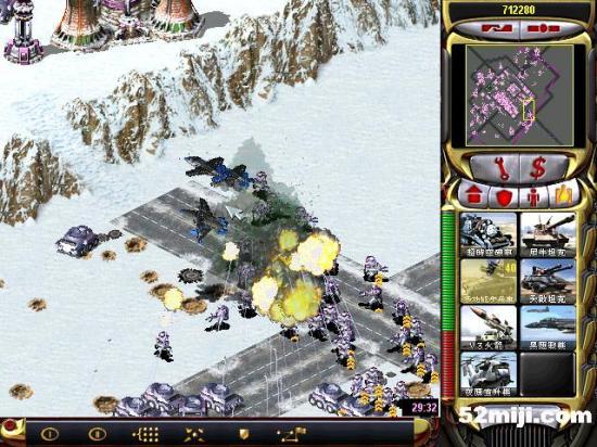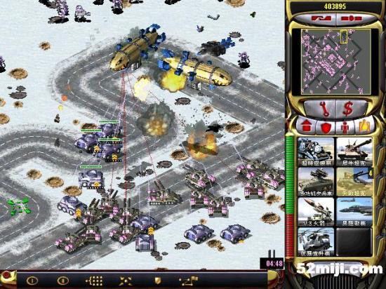 第三关:先说任务过关的基本方法:开始多出超时空兵,在四个路口防守敌人坦克(敌人每个方向出兵:东北方向是三星动员兵和空艇,最后偶尔出黑鹰。东南方向是三星灰熊和V3以及黑鹰,西北方向三星苏联的以及黑鹰。西南出三星光棱和天启)然后大量造防空车和防空导弹,同时卖掉四个路口的光棱塔和磁暴线圈以及多余的空指部,使道路畅通,防空车得以下山,在四周布防,在山下出站车工厂,加速出防空坦克、超时空兵在四个方向(地图最边缘防守)多造防空坦克即可。特别注意:矿物精炼厂不能被摧毁,摧毁任务即失败!!开始防黑鹰方法:敌人黑鹰投弹瞬间,超时空兵强行攻击自己的矿物精炼厂,投弹完毕撤销。看下面的图,不详细说明了。点图的左上角,每张图都有简单说明!