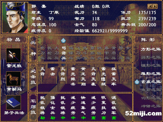 武将 火箭 火雷 御飞刀14 地泉裂劲21 雷击闪26 后伏兵阵34
