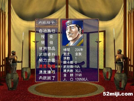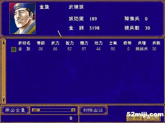 可玩指数:10,出来一城一将,比邻长沙、江陵、永安,所处地理位置相当优越,荆襄名将云集,可满足玩家收集猛将好军师的需要;由一城一将而统一全国,难度系数较大,发展前期可享受被电脑虐待的快感。因为金旋,刑道荣将军终有用武之地;因为金旋,金旋抓将大法就此诞生!