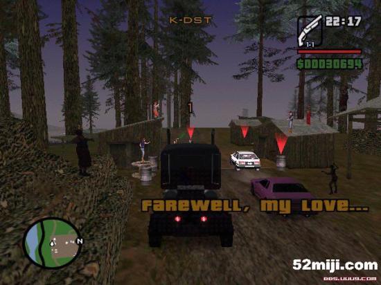 还有那辆Sadler!一定要将任务进行到底,它才会出现,当时我玩这个任务时,由于用了密籍,我就没管后面的追车,完成任务后,我就去加油站看那辆Sabre上的人死没有,结果他没死还打我,我顺手开上了那辆Sadler。惊奇的发现,该车是无敌的,这真是偶然!从此我得到个启发:一定要将任务进行到底。比如:目标逃跑后,等他上车,这些NPC开的车可能有特别属性!