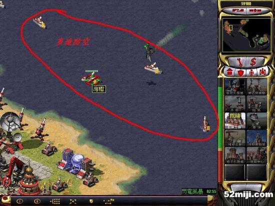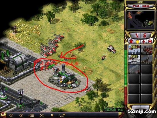 工程师占个敌矿厂后马上造个重工从这儿出,敌人会不断造机枪和光棱塔,建议打掉一个就放个围墙上去,这样它就不造了,其它光棱也不打围墙~~