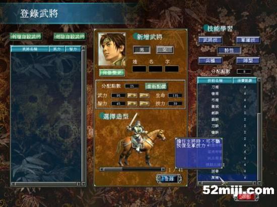 2、 自设武将:有前途,因为现在可以选择带有全将技回和体回的主将特性。(我从不玩自设武将,效果不清楚。见谅)