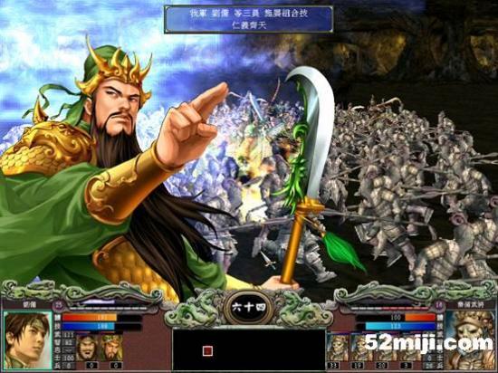 2、 合体技:我目前只用过刘关张和关羽张辽的合体技,这个只要在一个队伍中就可以触发,是暗金式技能,刘关张有2个合体技,分别需要2段和3段气力。“仁义齐天”的威力极大,场面也比较好看,这个不错。至于关羽和张辽的合体技,纯属摆设,威力极弱。