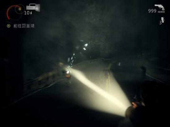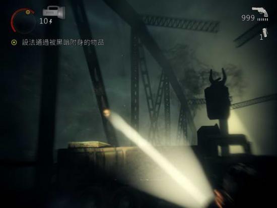 桥上铁板路会消失,还有失控的障碍物会攻击你,小心应付,注意脚下和手电筒电量。